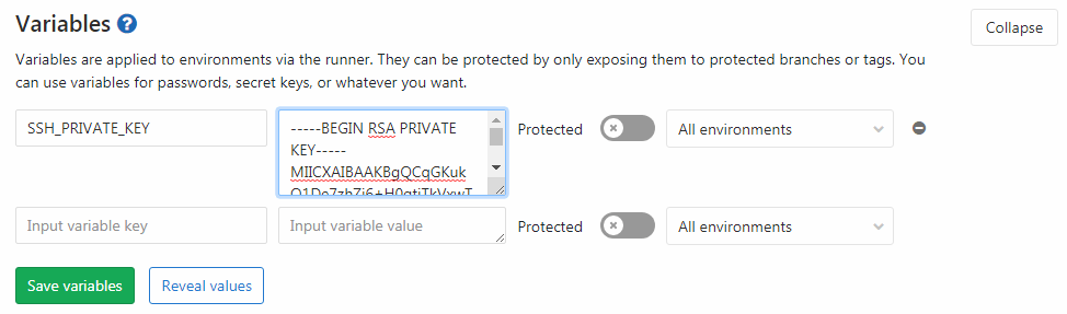 To the field KEY, add the name SSH_PRIVATE_KEY