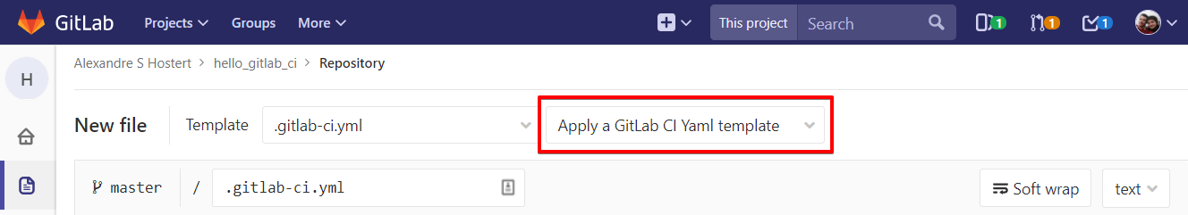 On next screen, we can select a template ready to go. Click on Apply a GitLab CI/CD Yaml template and select Elixir:
