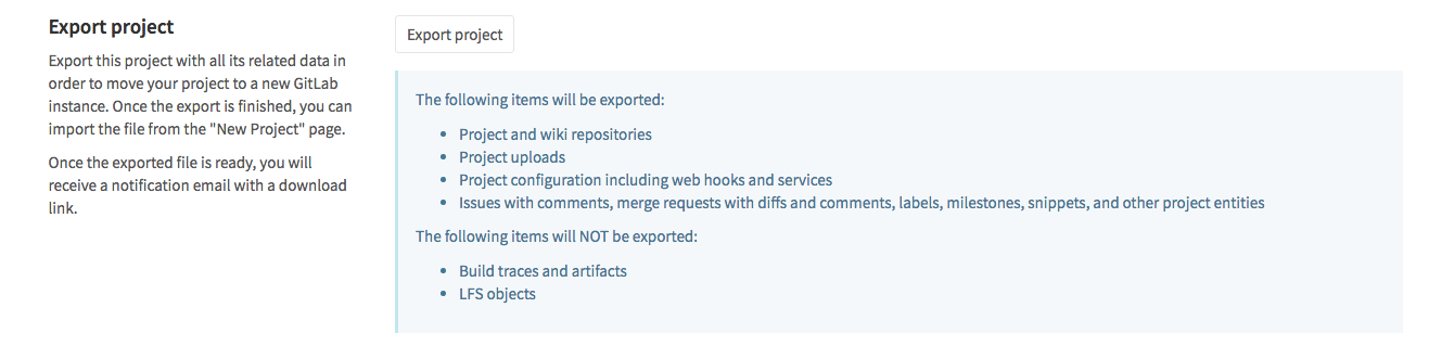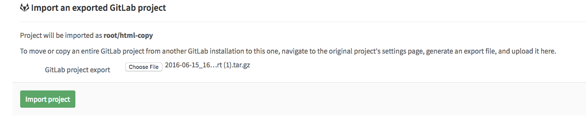 ) under 'Import sources'. Ask your administrator if you don't see the GitLab export button when creating a new project.- Starting with GitLab 10.0, administrators can disable the project export option on the GitLab instance in application settings (